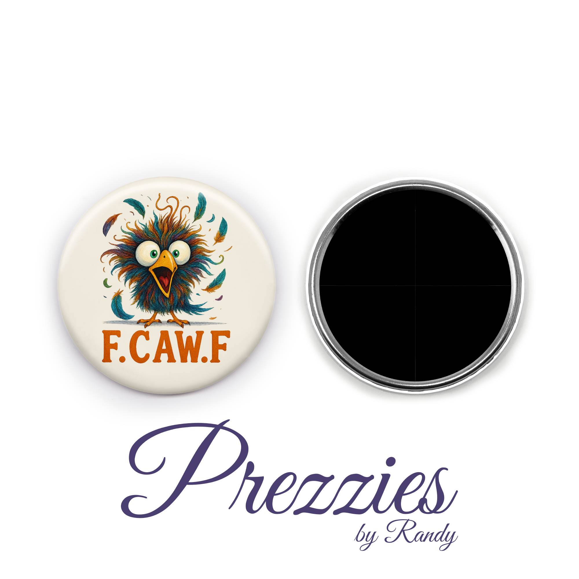 Bold, funny, and a little unhinged—in the best way. Our Crazy Chicken F.CAW.F Magnet or Pin Back Button is made to turn heads and spark laughs wherever it goes—whether it’s bringing attitude to your fridge or adding personality to a backpack, jacket, or tote.