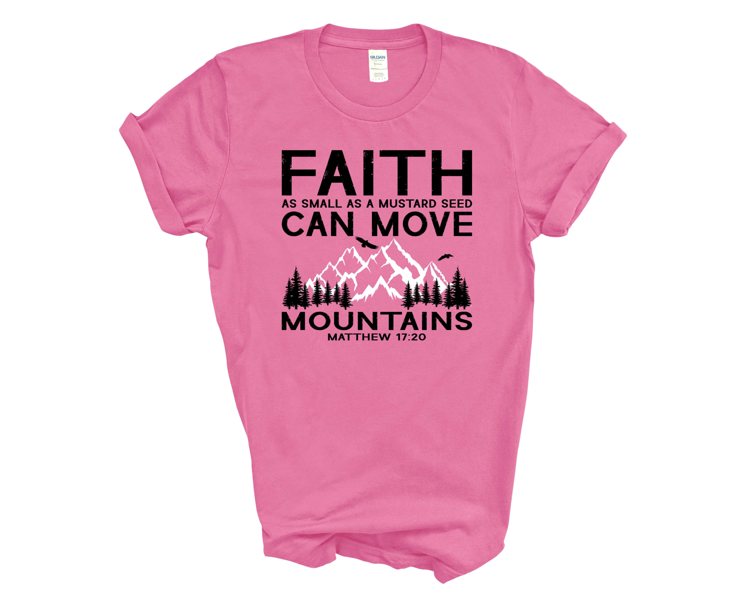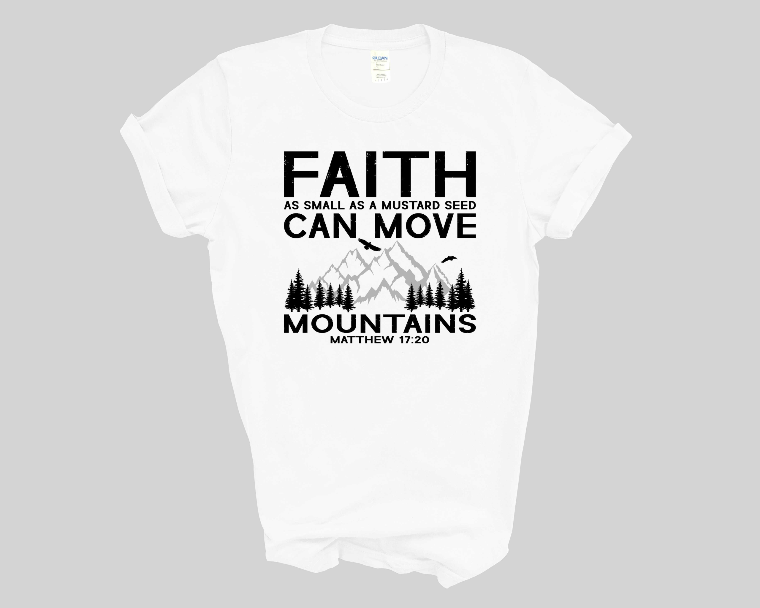 The Faith Can Move Mountains tee is the perfect way to express your faith and share it with the world. Made of soft cotton, this tee is comfortable and stylish. Remember that even faith as small as a mustard seed can move mountains!