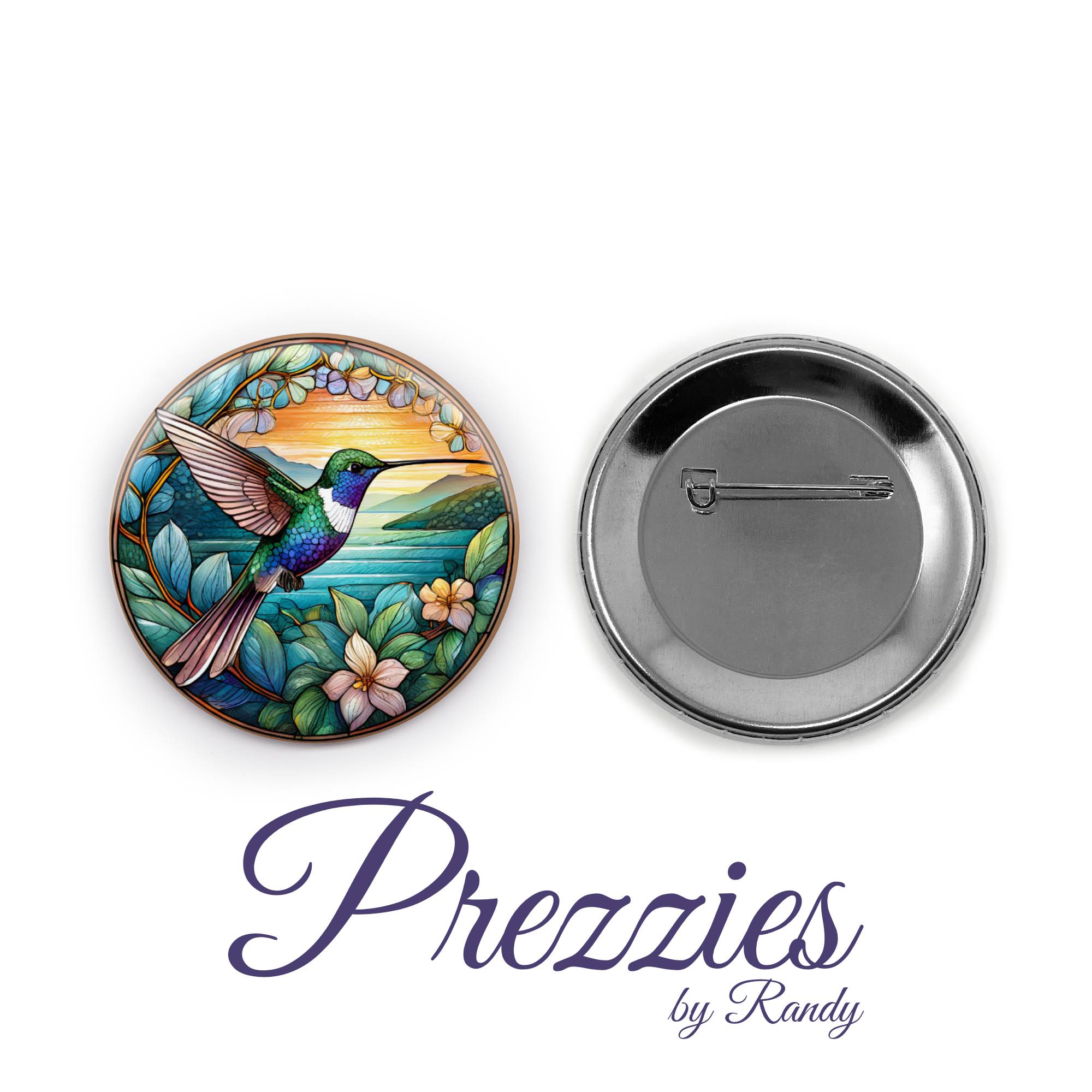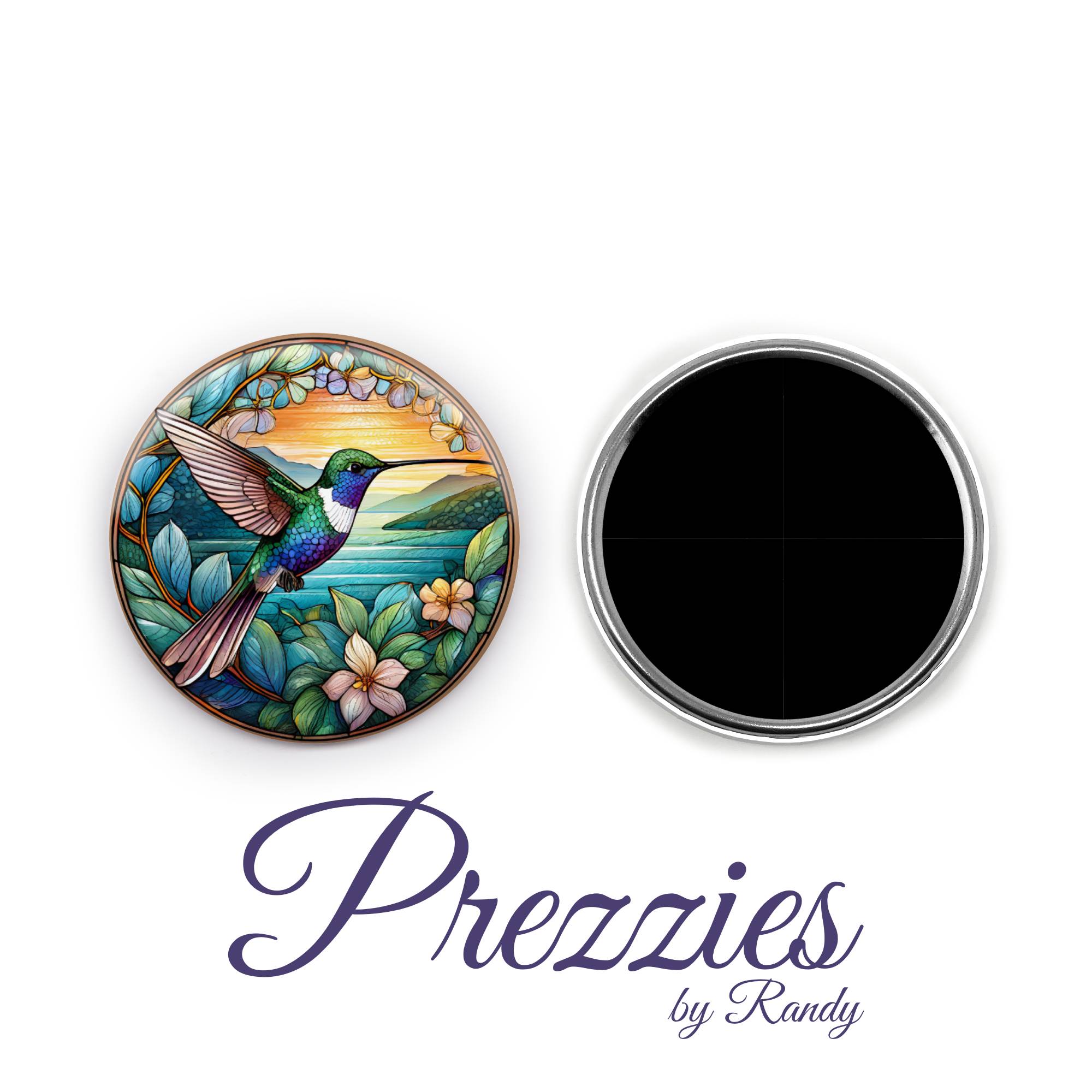 Delicate, vibrant, and full of beauty — our Stained Glass Hummingbird Magnet or Pin Back 2.25″ Button captures the graceful charm of a hummingbird in stunning stained glass style.